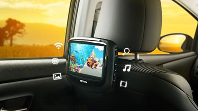 Dopřejte cestujícím vzadu více zábavy díky filmům, hudbě, hrám, elektronickým knížkám... Možností je nespočet. Systém palubní zábavy od Toyoty pro cestující na zadních sedadlech funguje jako multifunkční dokovací stanice umístěná v zadní části předních sedadel vašeho vozu Toyota. Umožňuje bezpečné připojení přenosných DVD přehrávačů Toyota s podporou CD, USB a SD. Nebo do doku zapojíte svůj iPad® a otevře se vám široký svět možností díky WiFi připojení přes Toyota Hotspot. Zařízení odpojíte a vyměníte během několika sekund – přesně tak, jak si to přejí vaši pasažéři.
